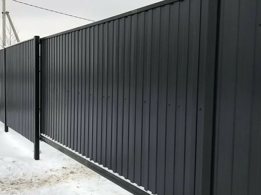 Особенностью является комбинация тонкого металла с надежным покрытием, что делает его идеальным для временных сооружений или дачных заборов. Он не боится перепадов температур, но рекомендуется избегать агрессивных химикатов. В отличие от более толстых профилей, этот вариант гибкий и удобен в обработке. Серый графит добавляет уникальности, позволяя интегрировать материал в минималистичный дизайн.